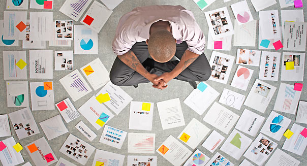 Businessman surrounded by papers