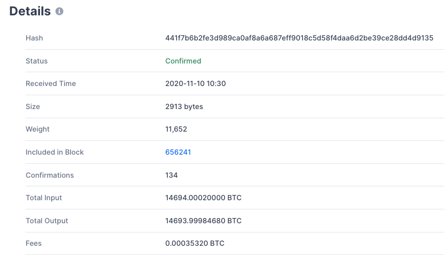 การทำธุรกรรมดังกล่าวนั้นถูกพบขึ้นครั้งแรกโดยบอทที่ติดตามการโอนเหรียญของเจ้ามืออย่าง Bitcoin Block Bot ตามภาพด้านล่างนี้