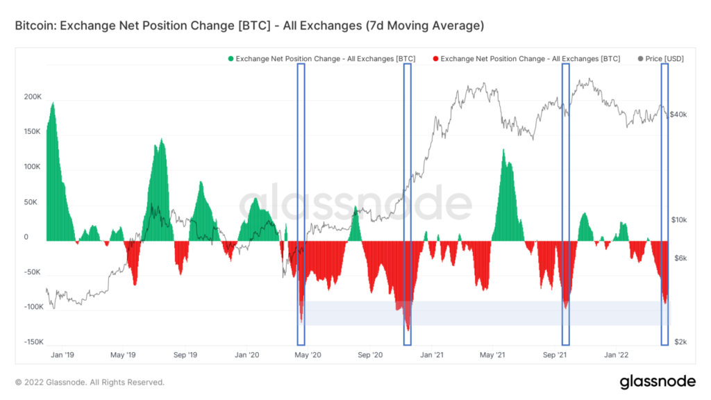 การไหลออกของ Bitcoin ออกนอกเว็บกระดานเทรดคริปโตได้เพิ่มขึ้นถึงอัตราที่เคยเกิดขึ้นเพียง 3 ครั้ง ในประวัติศาสตร์ของ BTC หลังจาก มีนาคม 2020 ธันวาคม 2020 (ส่วนใหญ่เป็น GBTC) และ กันยายน 2021