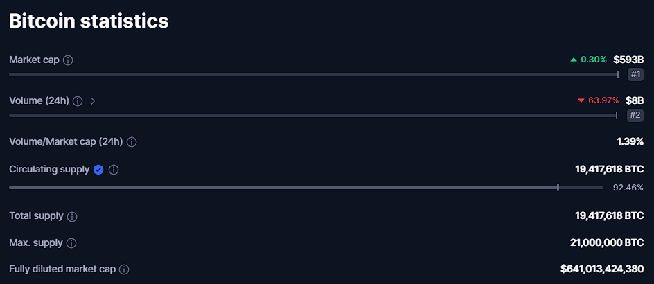 ปัจจุบัน ราคาของ Bitcoin ยังห่างไกลจากราคา 165,000 ดอลลาร์ไว้มาก อย่างไรก็ตาม มันยังคงยืนเหนือระดับแนวต้านตามจิตวิทยาที่ราคา 30,000 ดอลลาร์ และมีราคาซื้อขายอยู่ที่ 30,494 ดอลลาร์หากอ้างอิงราคาจาก CoinMarketCap โดยได้เพิ่มขึ้นมา 0.24% ในช่วง 24 ชั่วโมงที่ผ่านมา แต่แม้ว่าราคาจะเพิ่มขึ้นมาในกราฟรายวัน แต่ราคาของ Bitcoin ได้ร่วงลงมา 1.04% ในช่วง 1 สัปดาห์ที่ผ่านมา