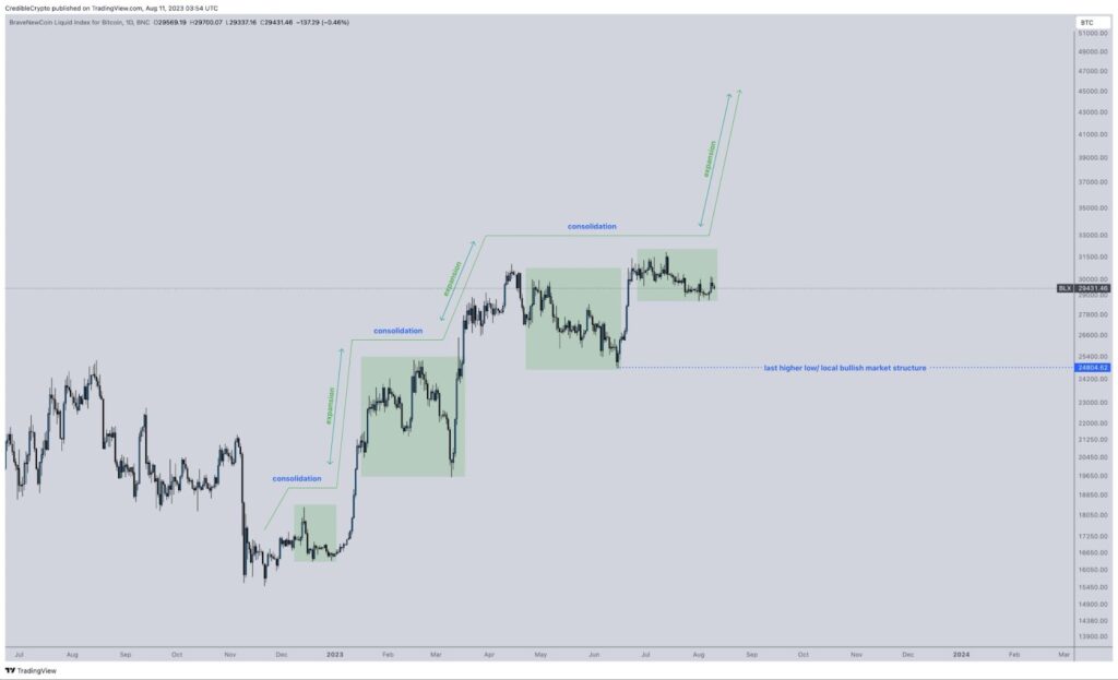 ในขณะที่แฟนคลับ Bitcoin จำนวนมากเสียความมั่นใจเนื่องจากการเคลื่อนไหวที่ไม่แน่นอนของราคา Bitcoin แต่นาย Credible Crypto กล่าวว่ามันเป็นเพียงช่วงหนึ่งก่อนที่จะเป็นตลาดกระทิง