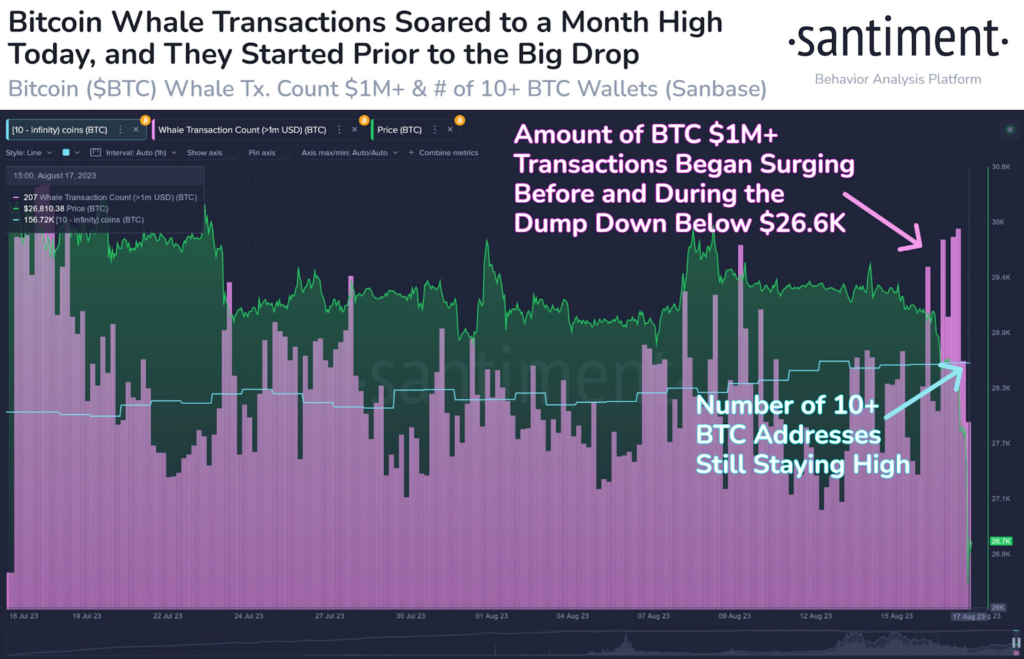 “ฝุ่นยังไม่หายตลบ หลังจากตลาด crypto มีการปรับฐานราคาที่รุนแรง เรากำลังเห็นธุรกรรม BTC จำนวนมากที่มีมูลค่ามากกว่า 1 ล้านดอลลาร์ ซึ่งบ่งชี้ว่าเจ้ามือมีบทบาทสำคัญในการเทขายครั้งนี้ แต่จำนวนกระเป๋า Crypto ขนาดใหญ่กลับไม่ได้มีจำนวนลดลงเลย”