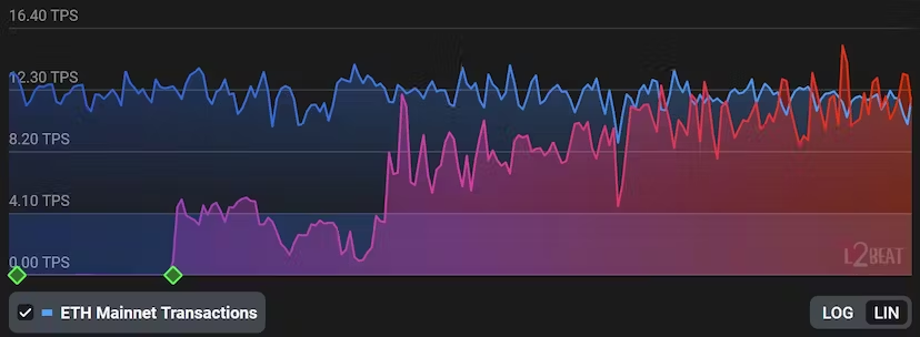 ขณะนี้ ZkSync Era ถือเป็นคู่แข่งของ Ethereum mainnet โดย ZkSync Era มีปริมาณธุรกรรมในช่วง 30 วันกว่า 29.6 ล้านรายการ เมื่อเทียบกับ Ethereum mainnet ที่มีประมาณ 30.2 ล้านรายการ อย่างไรก็ตาม การรวมตัวของนักล่า Airdrop สายเก็งกำไรอาจส่งผลให้ข้อมูลที่แสดงออกมาไม่ได้บ่งบอกถึงกิจกรรมบนเครือข่ายที่แท้จริงก็เป็นได้