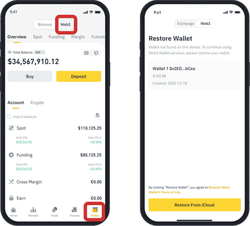 เพื่อความเรียบง่าย กระเป๋าเงิน Web3 ของ Binance จะเปิดตัวภายในแอปพลิเคชันหลักของ Binance ซึ่งส่วนใหญ่ใช้สำหรับการซื้อขายสกุลเงินดิจิทัล ทั้งนี้กระเป๋าเงินนั้นใช้การเก็บข้อมูลไว้กับหลายฝ่าย (MPC) ซึ่งจะแบ่งเก็บ private key ของผู้ใช้เป็นสามส่วนเล็กๆ ที่เรียกว่าคีย์แชร์ (key shares)