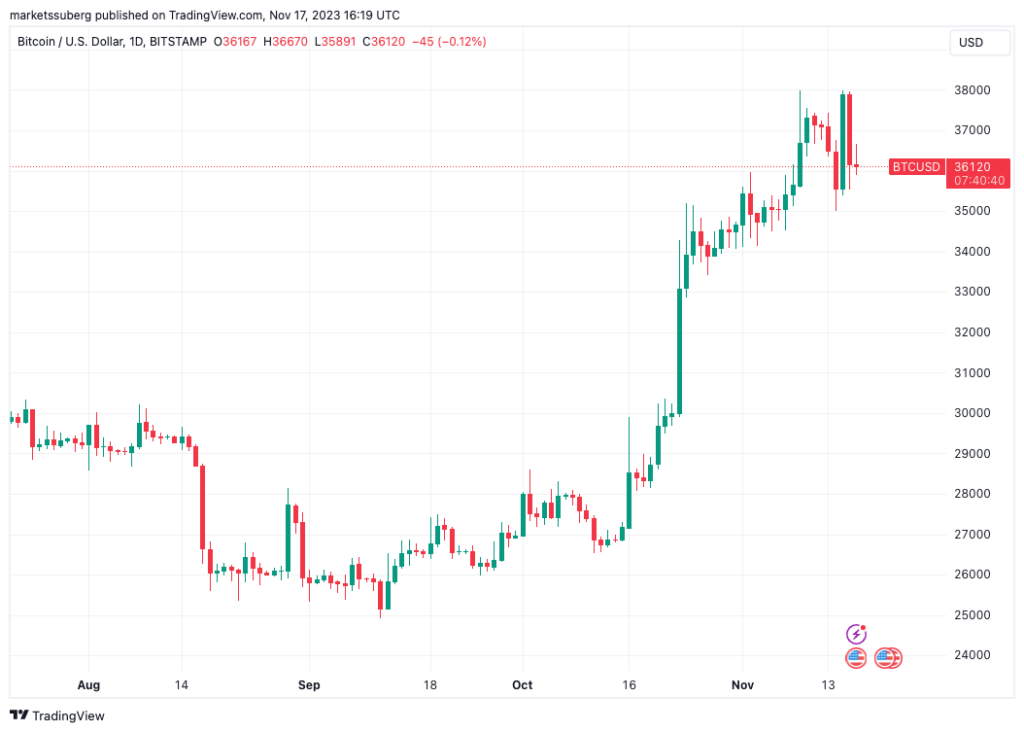 Bitcoin ในปัจจุบันอยู่ที่แถว ๆ ราคา 36,000 ดอลลาร์ และนักวิเคราะห์คาดการณ์ว่าราคา Bitcoin จะเกิดการปรับฐานในอีกไม่นาน