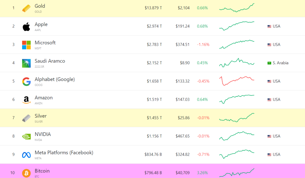 Bitcoin ทะยานสู่ Top 10 สินทรัพย์ที่มีมูลค่ามากที่สุดของโลก แซงหน้า Tesla และ Berkshire Hathaway