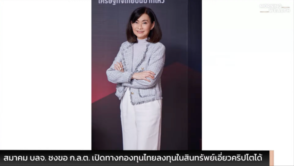The Standard Wealth ได้ทำการสัมภาษณ์ คุณ ชวินดา หาญรัตนกูลกรรมการ กรรมการผู้จัดการ บลจ. กรุงไทย และ นายกสมาคมบริษัทจัดการลงทุน ที่กล่าวว่าในปัจจุบัน ก.ล.ต. กำลังพิจารณาถึงความเหมาะสมเกี่ยวกับข้อเสนอของสมาคมบริษัทจัดการการลงทุนที่ขออนุญาติให้กองทุนรวมของไทย สามารถนำเงินทุนไปลงทุนต่อในกองทุนต่างประเทศที่ลงทุนเกี่ยวข้องกับคริปโต หรือ สินทรัพย์ดิจิทัลในต่างประเทศได้ ผ่านรูปแบบกองทุนรวมในต่างประเทศ ซึ่งมีผู้จัดการกองทุนมาช่วยบริหารจัดการ โดยจะเป็นรูปแบบที่ บลจ. ไทย ไม่ต้องเป็นผู้บริหารจัดการกองทุนเอง เพื่อเพิ่มความหลากหลายของสินทรัพย์ ซึ่งมีสัดส่วนการลงทุนที่น้อยหรือจะนำเงินบางส่วนไปลงทุน เพราะถือว่าคริปโตเป็นกลุ่มสินทรัพย์ที่มีความเสี่ยงสูง หรือหากจะดำเนินธุรกิจกองทุนรวมแบบเต็มรูปแบบที่เข้าไปลงทุนคริปโต ผู้บริหารกองทุนเองก็จะต้องอนุมัติใบอนุญาตจาก ก.ล.ต. แยกออกมา ซึ่งคาดว่าจะมีข้อสรุปออกมาภายในปีนี้