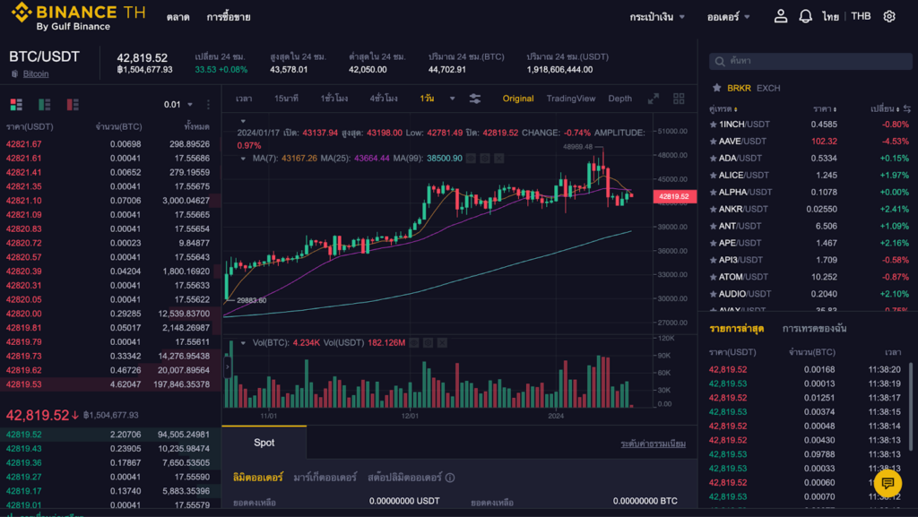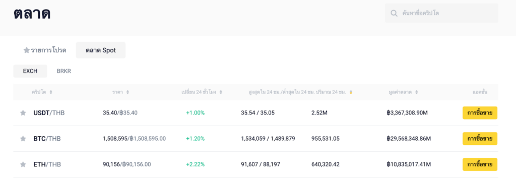 ในขณะนี้ทาง Binance.th ได้มีการลิสต์คู่เหรียญในสกุลเงินบาทเป็นจำนวน 3 เหรียญด้วยกัน ได้แก่ Bitcoin (BTC) , Ethereum (ETH) และ Tether ( USDT)
