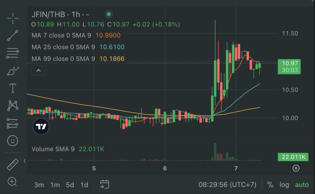 โทเค็นที่พัฒนาโดยบริษัทในกลุ่ม Jaymart ด้วยความร่วมมือกันของ 3 ทหารเสืออย่าง Jaymart, JFintech และ J Ventures ล่าสุดในวันนี้สามารถทำราคาได้เกือบถึง 12 บาทก่อนปรับราคาลงมาเหลือ 10.93 บาท โตขึ้น 8.2% ตลอด 24 ชั่วโมงที่ผ่านมา