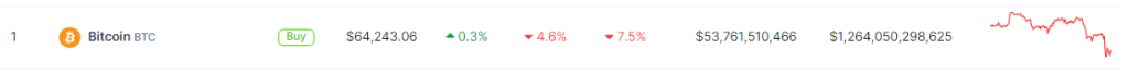 ในขณะที่เขียน Bitcoin มีการซื้อขายที่ราคา 60,300 ดอลลาร์ ลดลงมากกว่า 4.6% และ 7.5% ในกรอบเวลารายวันและรายสัปดาห์ ตามข้อมูลจาก Coingecko