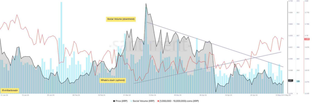 วอลุ่มการพูดถึง XRP ในโซเชียลขณะที่นักลงทุนรายใหญ่สะสมโทเค็น