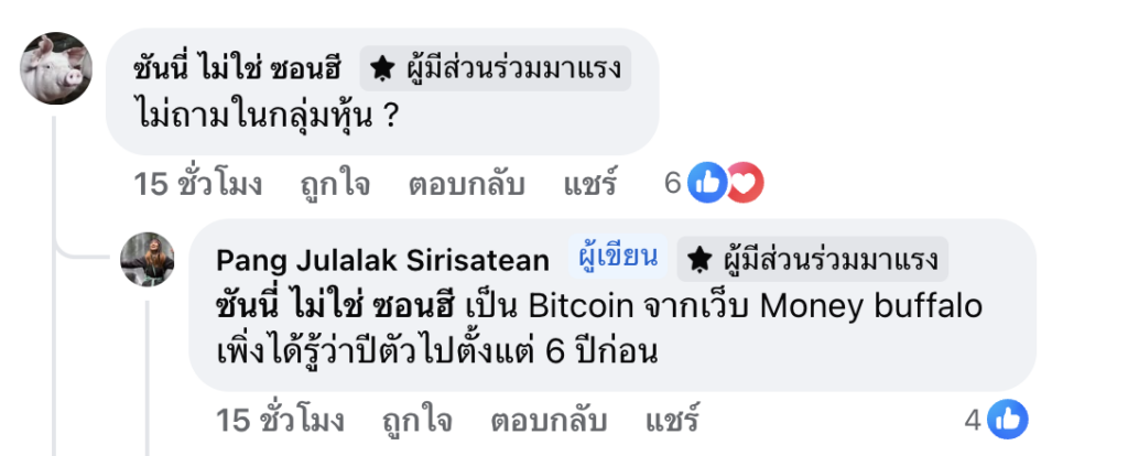 จากคอมเมนต์เพิ่มเติมของเจ้าของโพสต์ เปิดเผยว่า เหรียญที่ซื้อไว้เป็น Bitcoin จากเว็บ Money Buffalo และเพิ่งมารู้ว่า เว็บปิดไปตั้งแต่ 6 ปีก่อน ทำให้เธอเริ่มสับสนและไม่แน่ใจว่า เงินที่เคยลงทุนไปยังสามารถกู้คืนได้หรือไม่