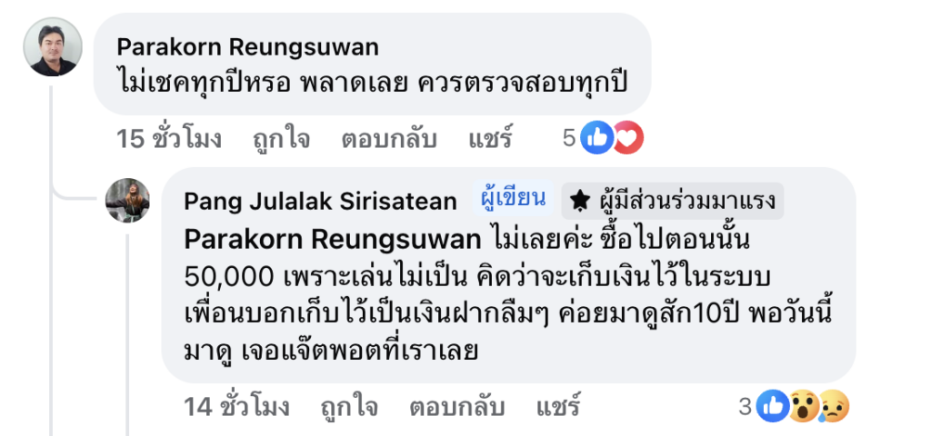 อีกหนึ่งคอมเมนต์เตือนว่า “ไม่เช็คทุกปีเหรอ? พลาดเลย ควรตรวจสอบบัญชีการลงทุนของตัวเองทุกปี”