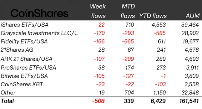 ทางด้านกองทุน ETF ของ BlackRock iShares บันทึกการขาดทุน 22 ล้านดอลลาร์ ซึ่งถือเป็นเหตุการณ์ที่เกิดขึ้นไม่บ่อยนัก อย่างไรก็ตาม กองทุน ProShares ETFs เป็นหนึ่งในไม่กี่กองทุนที่ยังมีเงินไหลเข้า โดยอยู่ที่ 38 ล้านดอลลาร์ ขณะที่กองทุนของ Grayscale Investments และ Fidelity Digital Assets เผชิญการไหลออกมากที่สุดที่ 170 ล้านดอลลาร์ และ 166 ล้านดอลลาร์ ตามลำดับ