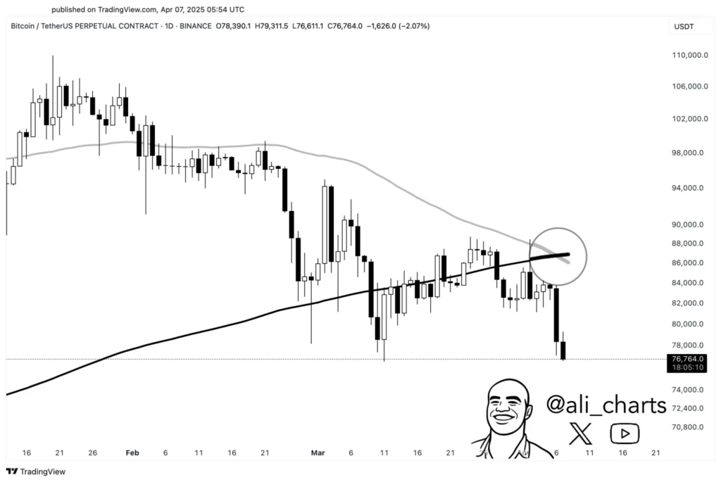 Ali Martinez นักวิเคราะห์ชื่อดัง ชี้ให้เห็นว่าในอนาคตอันใกล้ Bitcoin ยังคงมีสิทธิที่จะเผชิญหน้ากับขาลงต่อเนื่อง อันเป็นผลมาจากสัญญาณ “Death Cross” ซึ่งได้เกิดขึ้นแล้วในกราฟวัน