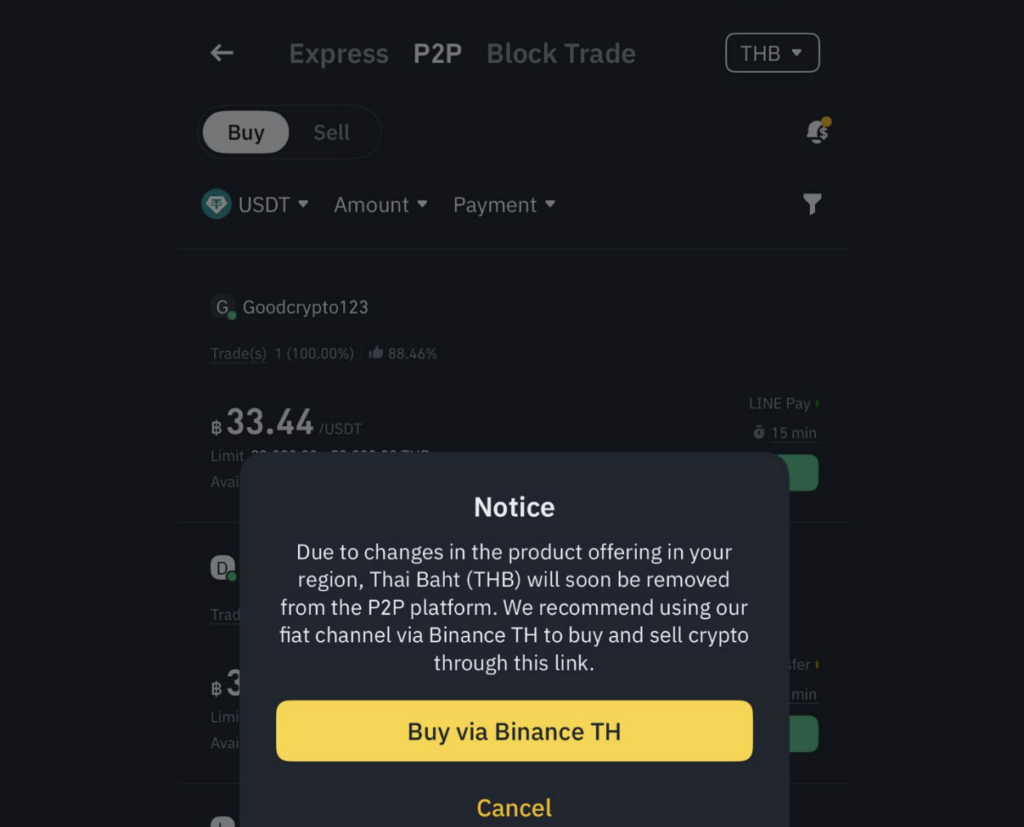 ในวันนี้ (17 เมษายน) กลุ่มคอมมูนิตี้ Binance Thai Community Club บนเฟสบุ๊ก เริ่มมีการพูดถึงข้อความแจ้งเตือนที่ได้รับจาก Binance Global เกี่ยวกับการปรับเปลี่ยนการให้บริการในประเทศไทย โดยใจความสำคัญอยู่ที่การยุติการสนับสนุนการซื้อขายด้วยสกุลเงินบาทบนแพลตฟอร์ม P2P