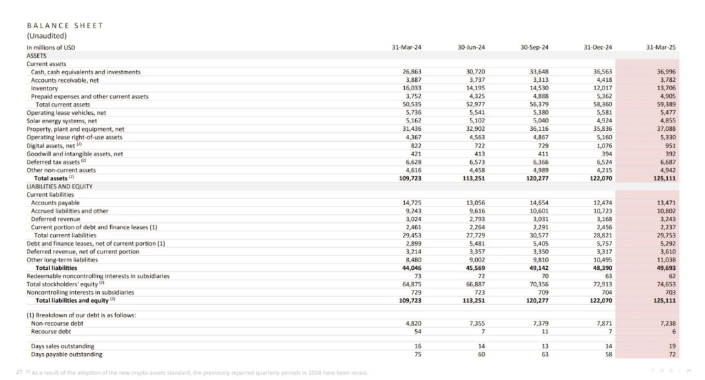 Tesla ยังคงถือครอง Bitcoin จำนวน 11,509 BTC ตลอดไตรมาสแรกของปี 2025 โดยไม่ได้ขายออกเลยแม้แต่เหรียญเดียว ตามรายงานผลประกอบการประจำไตรมาส ที่เปิดเผยเมื่อวันที่ 22 เมษายน