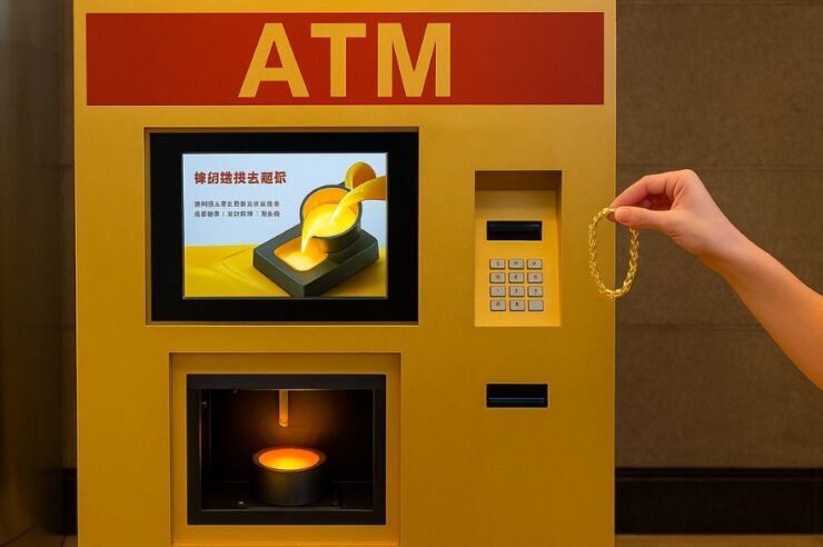 ประเทศจีนกำลังฮือฮากับตู้ ATM รูปแบบใหม่ ที่ไม่ได้ให้กดเงิน แต่สามารถเอาทองคำมาหลอม แลกไปเป็นเงินสดได้ โดยบริษัท Kinghood Group ซึ่งเป็นผู้ผลิตเครื่องประดับในจีน ได้เปิดตัวตู้ “Gold Trade-In ATM” ที่ประชาชนสามารถเอาทองรูปพรรณมารีไซเคิลและรับเงินสดเข้าบัญชีทันที โดยตู้ ATM นี้ จะรับเฉพาะทองคำ ที่หนักอย่างน้อย 3 กรัม และมีความบริสุทธิ์ขั้นต่ำ 50%