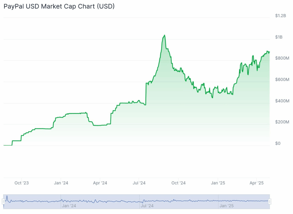 PYUSD กลับมาฟื้นตัวได้ในปี 2025 โดยอุปทานหมุนเวียนของ PYUSD เพิ่มขึ้นถึง 75% ตั้งแต่ช่วงต้นปี ตามข้อมูลจาก CoinGecko แม้จะยังต่ำกว่าจุดสูงสุดในเดือนสิงหาคม 2024 ที่เคยแตะระดับ มากกว่า 1 พันล้านดอลลาร์ อยู่ราว 14%