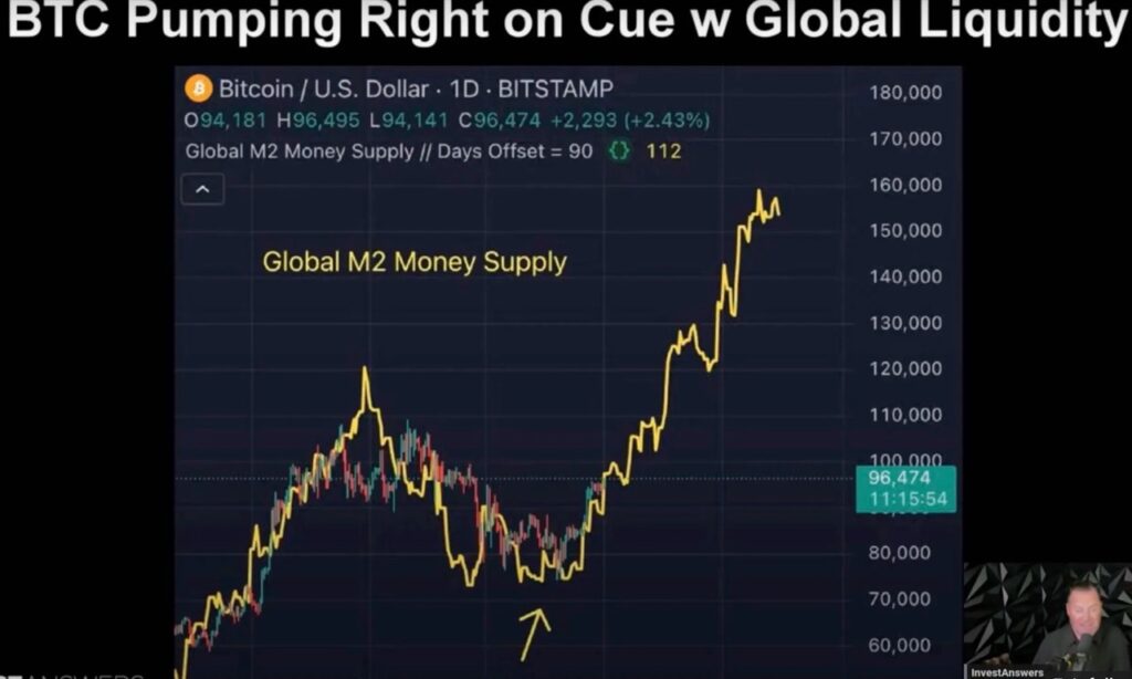 นักวิเคราะห์ใช้ปริมาณเงิน M2 ทั่วโลก ซึ่งวัดปริมาณเงินที่ไหลเวียนในระบบการเงิน เพื่อคาดการณ์เป้าหมายราคาที่เป็นไปได้ของ Bitcoin