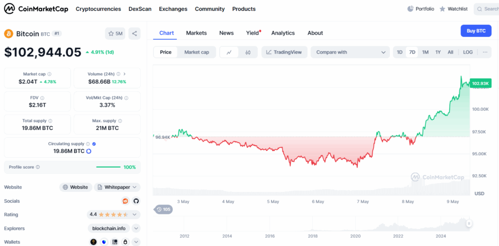 ในขณะที่เขียนรายงาน Bitcoin มีการซื้อขายกันอยู่ที่ระดับ 102,715 ดอลลาร์ เพิ่มขึ้น 4.91% และมีกระแสเงินไหลเข้าตลาดคริปโต 2.35 แสนล้านดอลลาร์ในช่วง 24 ชั่วโมงที่ผ่านมา อ้างอิงข้อมูลจาก Coinmarketcap