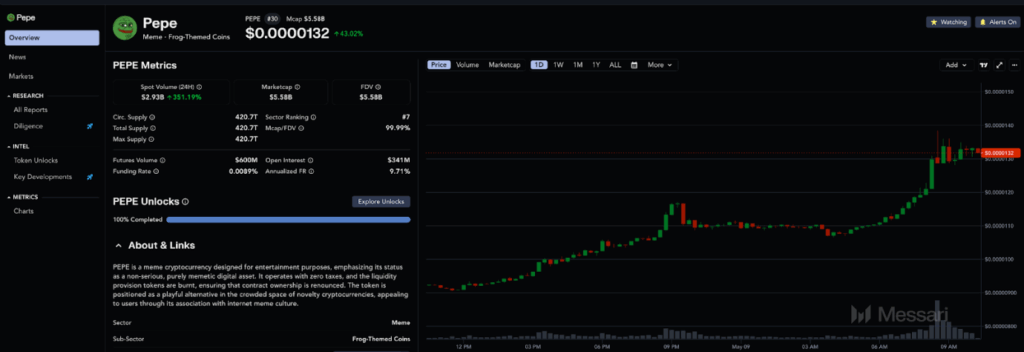 ราคาเหรียญ PEPE พุ่งขึ้นกว่า 43% แตะระดับ 0.00001334 ดอลลาร์ ท่ามกลางกระแสความสนใจที่เพิ่มขึ้น ก่อนที่โปรเจกต์ในช่วงเริ่มต้นของ MIND of Pepe ($MIND) จะสิ้นสุดลง ในอีกเพียง 21 วัน ซึ่งในขณะนี้สามารถระดมทุนไปได้แล้วกว่า 8.9 ล้านดอลลาร์