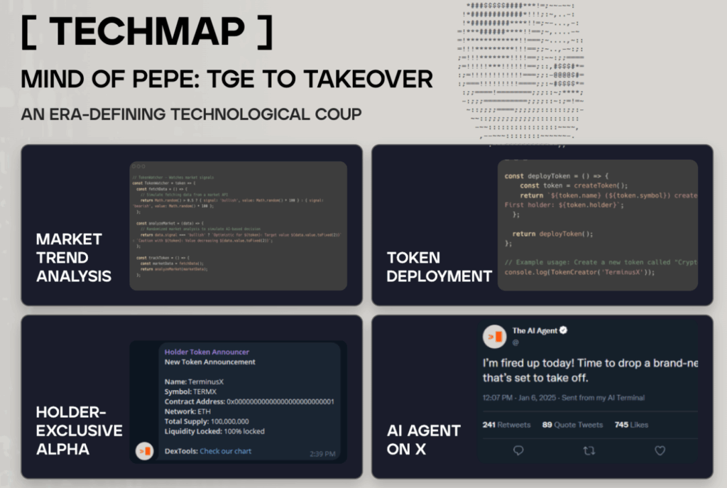 คล้ายกับกรอบแนวคิด Eliza ของ ai16z โดย MIND of Pepe สามารถประเมินโอกาสการลงทุน และดำเนินกลยุทธ์การเทรดได้อย่างชาญฉลาด พร้อมเชื่อมต่อกับแพลตฟอร์มหลักอย่าง X และ Telegram เพื่อสื่อสารและรับข้อมูลแบบเรียลไทม์