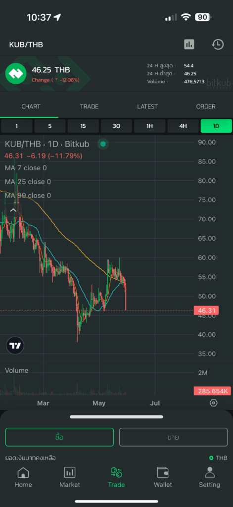 ราคาของ Bitkub Coin (KUB) ได้ปรับตัวลดลงอย่างรุนแรงในช่วงไม่กี่ชั่วโมงที่ผ่านมา โดยล่าสุดหลุดระดับแนวรับสำคัญที่ 50 บาทไปอย่างไม่ไว้หน้า ข้อมูลจาก Bitkub Exchange เผยว่าราคา KUB ร่วงลงสู่ระดับประมาณ 48.7 บาท ณ เวลาที่รายงาน ซึ่งนับว่าเป็นราคาต่ำสุดในรอบเกือบ 1 เดือน