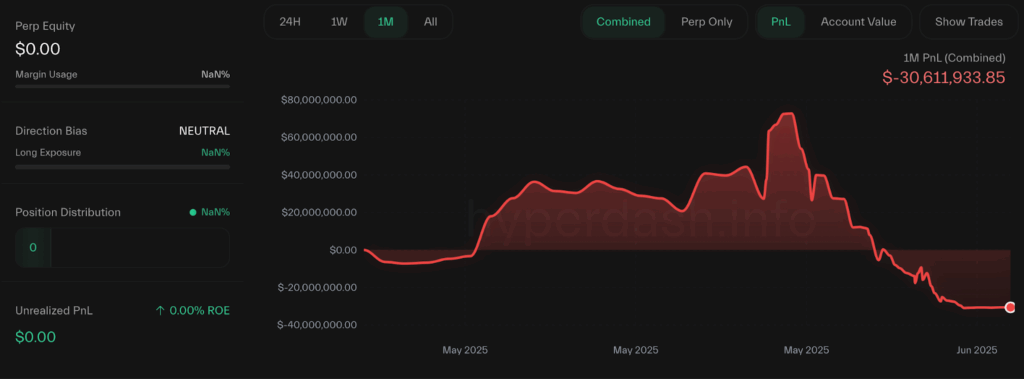 ย้อนกลับไปเมื่อช่วงต้น-กลางเดือนพฤษภาคมที่ผ่านมา Wynn ได้ทำการเดิมพันครั้งใหญ่ในชีวิตอีกหนไปกับการลงทุนใน Bitcoin ผ่านตลาดฟิวเจอร์สที่ตัวเขาได้เปิดตำแหน่ง Long position ไว้เป็นมูลค่ากว่า 1.25 พันล้านดอลลาร์ พร้อมอัดฉีดเลเวอเรจอีก 40 เท่าตัว บนแพลตฟอร์ม Hyperliquid ซึ่งในตอนแรกการเดิมพันก็ดูเหมือนจะเป็นไปได้ด้วยดีเพราะ Wynn สามารถทำกำไรได้อย่างมหาศาลเกินกว่า $40 ล้านในช่วงเวลาสั้น ๆ แต่เขาก็ยังไม่รีบปิด Position และโกยกำไรเพราะเชื่อว่า Bitcoin จะพุ่งขึ้นไปต่อ