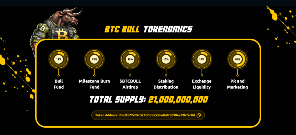 BTC Bull กำลังถูกจับตามองในฐานะหนึ่งใน โปรเจกต์คริปโตสายมีมที่น่าจับตาที่สุดแห่งปี 2025 ด้วยแนวคิดที่เชื่อมโยงกับ Bitcoin และศักยภาพในการสร้างรายได้แบบพาสซีฟ ซึ่งผู้ถือโทเค็น สามารถนำโทเค็น $BTCBULL ไป stake เพื่อรับผลตอบแทนที่คุ้มค่า และเติบโตไปพร้อมกับการปรับตัวขึ้นของราคา Bitcoin