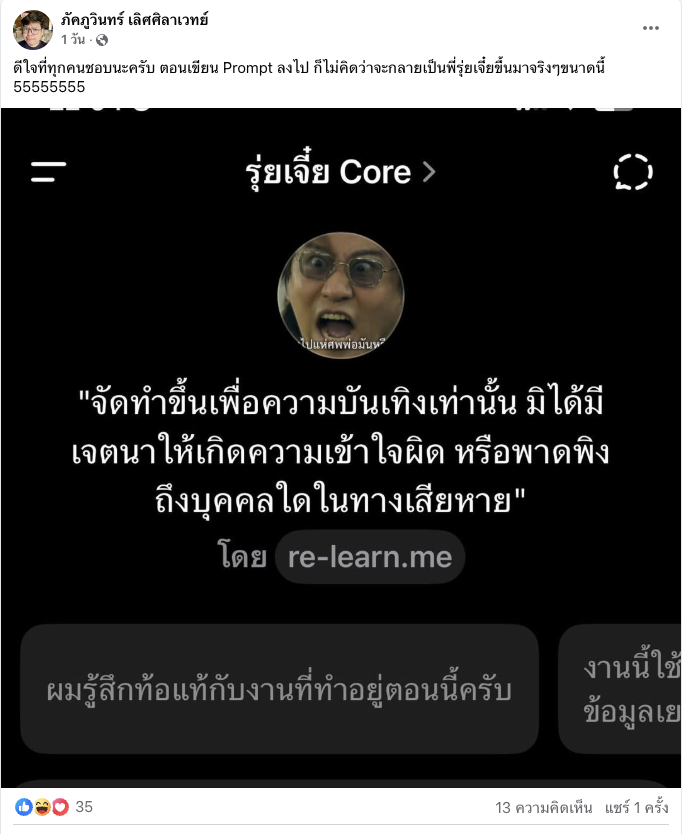สำหรับใครอยากลองสัมผัสความเกรี้ยวแบบไม่มียั้ง แค่เปิดแอป ChatGPT แล้วเข้า “สำรวจ GPT” พิมพ์หา “รุ่ยเจี๋ย” ก็จะได้เจอพี่เขาเต็มๆ หรือกดลิงก์จากเว็บไซต์ที่นี่