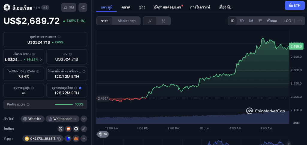 การเคลื่อนไหวล่าสุดของ Bernstein เกิดขึ้นท่ามกลางราคา Ethereum ที่ปรับตัวขึ้นมาอยู่ที่ $2,689 เพิ่มขึ้น 7.65% ในช่วง 24 ชั่วโมงที่ผ่านมา อ้างอิงตามข้อมูลจาก CoinMarketCap