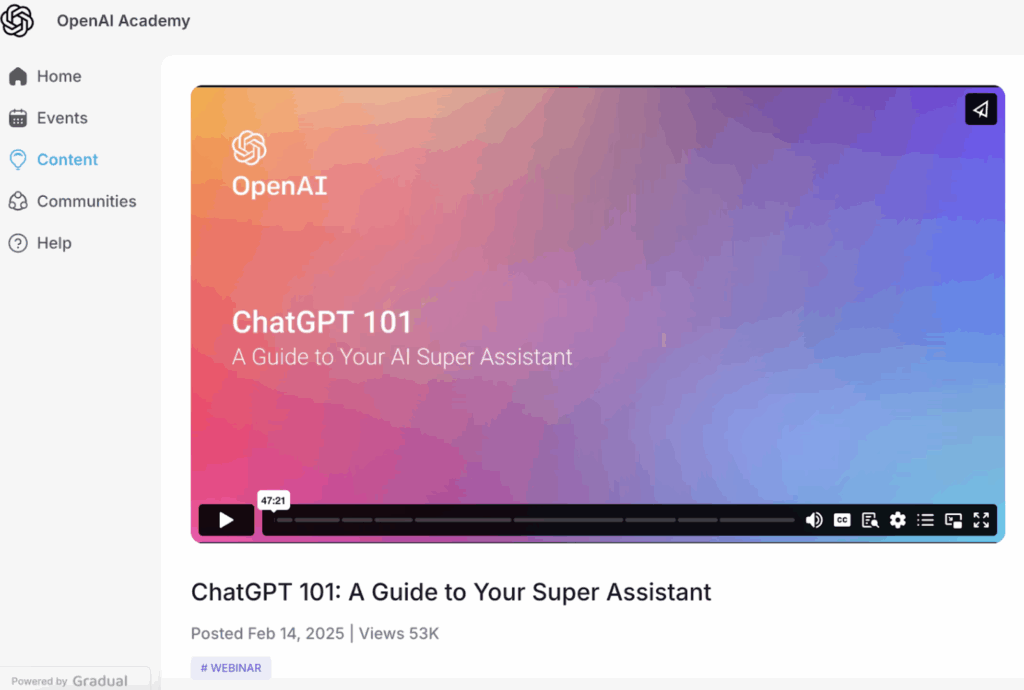 คอร์สแรกคือ ChatGPT 101: A Guide to Your Super Assistant ซึ่งเปรียบเสมือนประตูบานแรกที่จะเปิดโลกให้คุณได้ทำความรู้จักและเข้าใจการทำงานของ ChatGPT ในฐานะผู้ช่วยอัจฉริยะส่วนตัวของคุณ คอร์สนี้มีความยาวประมาณ 43 นาที เหมาะสำหรับผู้เริ่มต้นที่อยากเข้าใจหลักการและวิธีใช้เบื้องต้น