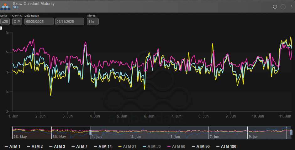 โดยปัจจุบันข้อมูลจากตลาดอนุพันธ์ของ Solana ระบุว่า ความต้องการซื้อสัญญา Call พุ่งขึ้นชัดเจนในช่วง 3 สัปดาห์ถึง 2 เดือนข้างหน้า สะท้อนความเชื่อมั่นของเทรดเดอร์ที่มองว่า Solana จะมีทิศทางเป็นขาขึ้น ซึ่งส่วนหนึ่งก็มาจากข่าวเกี่ยวกับกองทุน ETF และการอนุมัติด้านการ Staking ที่กำลังเป็นกระแสร้อนแรง