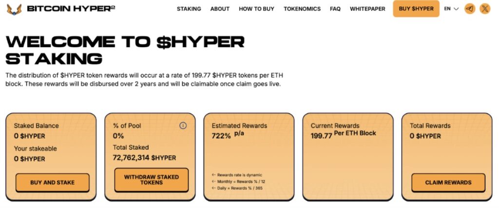 Bitcoin Hyper ตั้งเป้าที่จะเดินตามรอย โดยเปิดให้ผู้ถือ $HYPER ทำการ Stake เพื่อรับผลตอบแทน ใช้เหรียญเพื่อเข้าถึงเครื่องมือ DeFi และผลิตภัณฑ์ผลตอบแทนสูงในอนาคต และผู้ถือเหรียญจะได้รับสิทธิ์ร่วมพัฒนาและรับเงินสนับสนุนหากสร้างแอปบนระบบ