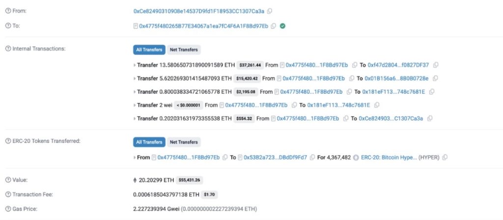 ในขณะเดียวกัน เหรียญ $HYPER ได้ถูกซื้อโดยเจ้ามือหรือวาฬมูลค่ากว่า 55,000 ดอลลาร์ในวันอังคารที่ผ่านมา สะท้อนความสนใจจาก “Smart Money” ที่เริ่มเข้ามาจับตาโปรเจกต์นี้อย่างจริงจัง