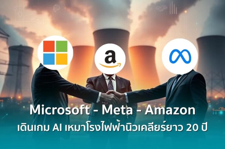 เมื่อเล็งเห็นถึงความจำเป็นนี้ 3 บริษัทเทคโนโลยีระดับโลก ได้แก่ Microsoft, Meta และ Amazon จึงเริ่มมองหาคำตอบว่า จะสามารถจัดหาพลังงานไฟฟ้าปริมาณมหาศาลในราคาที่เหมาะสมได้อย่างไร และคำตอบที่พวกเขาพบล้วนเห็นตรงกัน นั่นก็คือ “โรงไฟฟ้านิวเคลียร์”