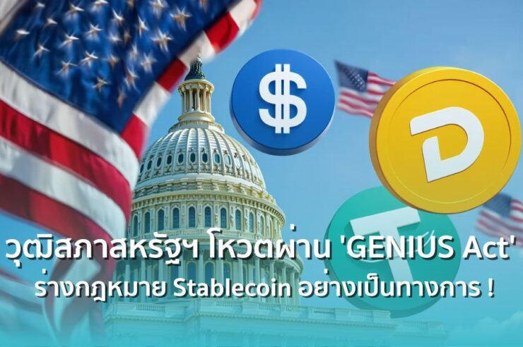 ร่างกฎหมาย “GENIUS Act” หรือชื่อเต็ม Guiding and Establishing National Innovation for U.S. Stablecoins Act ได้ผ่านความเห็นชอบจาก วุฒิสภาสหรัฐฯ ไปเป็นที่เรียบร้อยแล้วเมื่อวันที่ 17 มิ.ย. ที่ผ่านมา ด้วยคะแนนเสียงถล่มทลาย 68 ต่อ 30 เสียง