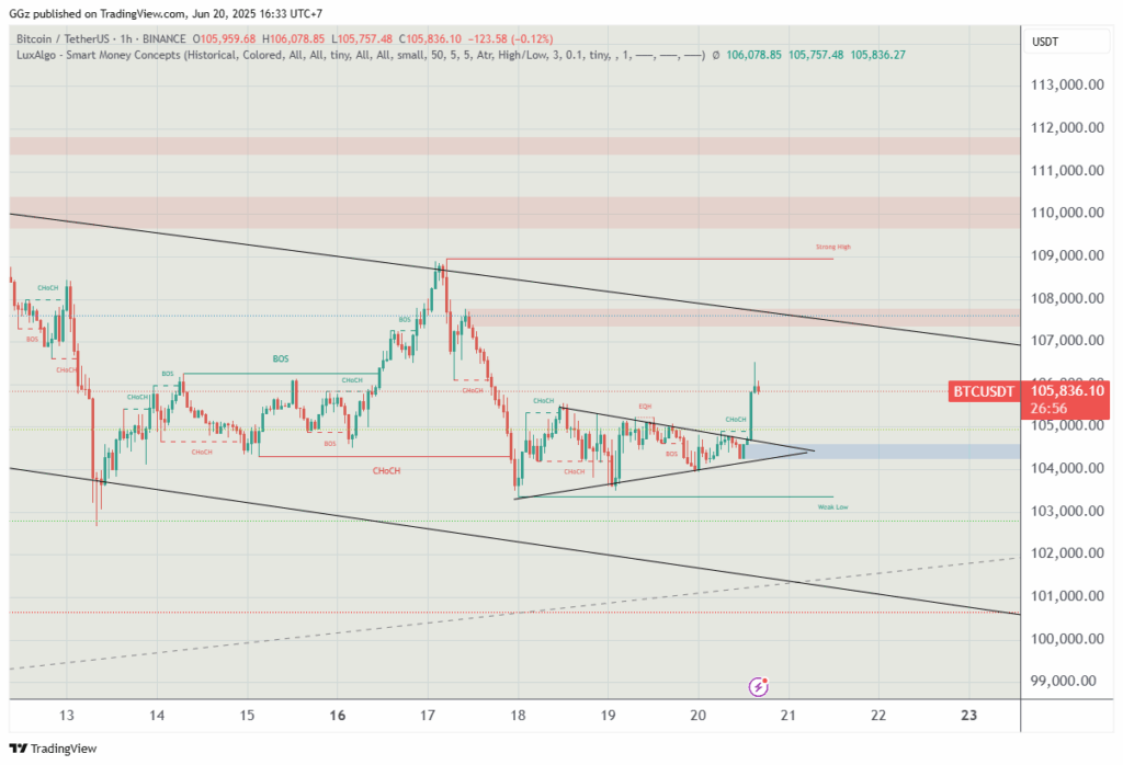 Bitcoin ยังคงสร้างความประหลาดใจให้กับนักเทรดอย่างต่อเนื่อง โดยล่าสุดวันนี้ราคาได้พุ่งทะลุแนวต้านสำคัญที่ระดับ $106,000 ท่ามกลางความตึงเครียดที่ยังคงร้อนระอุจากสถานการณ์ระหว่างอิสราเอลและอิหร่าน