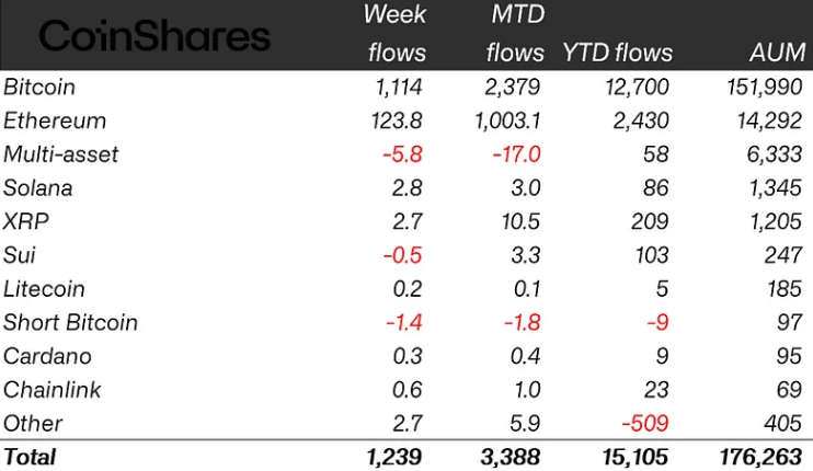 ดูเหมือนว่าเจ้ามือยังคงสนใจในคริปโตอย่างต่อเนื่อง หลังรายงานล่าสุดจาก CoinShares เผยว่ากองทุน Crypto ETP ทั่วโลกดึงเงินทุนใหม่ถึง 1.24 พันล้านดอลลาร์ ในช่วงสัปดาห์ที่ผ่านมา ส่งยอดเงินไหลเข้ารวมตั้งแต่ต้นปีทำสถิติใหม่ที่ 15.1 พันล้านดอลลาร์ ขณะที่สินทรัพย์ภายใต้การบริหาร (AUM) ถูกแรงขายกดลงเล็กน้อยเหลือ 176.3 พันล้านดอลลาร์