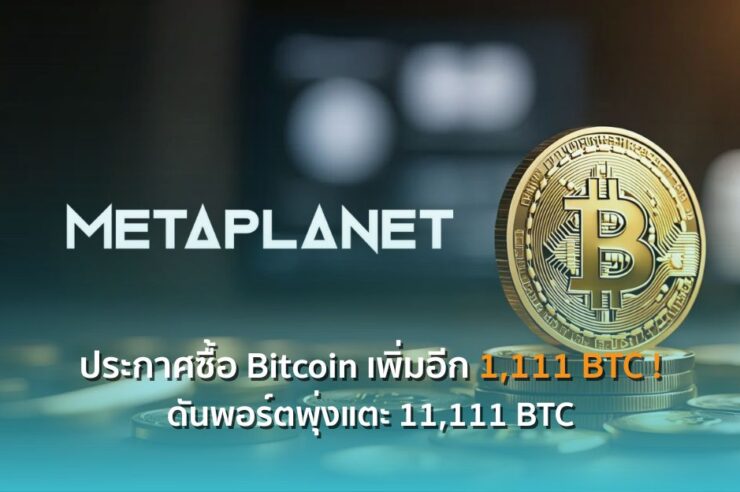 Metaplanet บริษัทเทคโนโลยีและสื่อบันเทิงจากประเทศญี่ปุ่น ได้ประกาศล่าสุดในวันนี้ว่า พวกเขาได้เข้าซื้อ Bitcoin เพิ่มอีก 1,111 BTC คิดเป็นมูลค่า 118.2 ล้านดอลลาร์สหรัฐฯ โดยมีราคาซื้อเฉลี่ยประมาณ $106,408 ต่อ 1 BTC แม้ว่าราคาจะปรับร่วงลดลงกว่า 4% ในช่วงสัปดาห์ที่ผ่านมา
