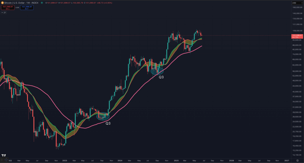Cowen ยังกล่าวอีกว่าการวิเคราะห์ของเขามีพื้นฐานมาจากสถิติในช่วง 2 ปีที่ผ่านมา ที่ซึ่ง Bitcoin จะกลับตัวเป็นขาลงในช่วงไตรมาสที่ 3 ของปี โดย Cowen คาดว่าการปรับฐานจะเริ่มต้นขึ้นตั้งแต่ช่วงกลางเดือนมิถุนายน ยาวไปจนถึงช่วงสิงหาคมหรือกันยายน ที่ซึ่ง Bitcoin จะทำจุดต่ำสุดใหม่