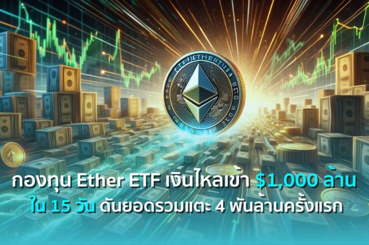 กองทุน Spot Ethereum ETF ที่เปิดให้ซื้อขายในสหรัฐอเมริกา กำลังสร้างปรากฏการณ์ที่เหนือความคาดหมาย ด้วยยอดเงินไหลเข้ารวมทะลุ 4,000 ล้านดอลลาร์สหรัฐฯ ไปแล้ว เมื่อวันที่ 23 มิถุนายนที่ผ่านมา ซึ่งใช้เวลาเพียงแค่ 11 เดือนนับตั้งแต่เปิดให้ทำการซื้อขาย