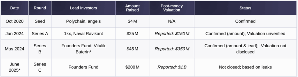 เมื่อวันที่ 24 มิถุนายนที่ผ่านมา Bloomberg รายงานว่า Polymarket กำลังอยู่ระหว่างการปิดดีลระดมทุนรอบใหม่มูลค่ากว่า 200 ล้านดอลลาร์ ซึ่งนำโดย Founders Fund บริษัทลงทุนยักษ์ใหญ่ของ Peter Thiel โดยการระดมทุนรอบนี้จะช่วยให้มูลค่าของบริษัทพุ่งทะลุ 1,000 ล้านดอลลาร์ ส่งผลให้ Polymarket ได้รับสถานะ “ยูนิคอร์น” อย่างเป็นทางการ