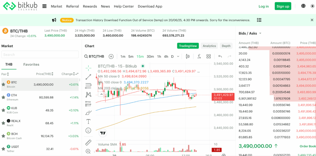 ขั้นแรก ให้คุณเลือกแพลตฟอร์มซื้อขาย ที่เปิดให้บริการในไทยและได้รับใบอนุญาตจาก ก.ล.ต. เช่น Bitkub, Orbix หรือ Binance TH จากนั้นเข้าสู่เว็บไซต์หรือแอปพลิเคชันของเว็บไซต์ที่เลือก แล้วกดสมัครสมาชิก กรอกข้อมูลให้ครบถ้วน พร้อมทำการยืนยันตัวตน (KYC) ซึ่งขั้นตอนนี้ใช้เวลาไม่นาน เมื่อผ่านการยืนยันแล้ว คุณจะสามารถฝากเงินและเริ่มต้นลงทุนได้ทันที