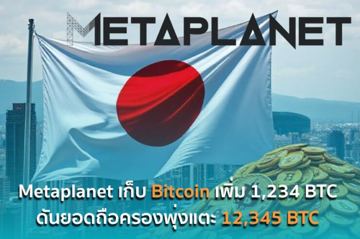 ในวันนี้ (26 มิถุนายน 2025) บริษัท Metaplanet ได้ประกาศผ่านแพลตฟอร์มโซเชียลมีเดีย X ว่า Metaplanet เข้าซื้อ Bitcoin เพิ่มอีก 1,234 BTC ส่งผลให้ตอนนี้บริษัทถือ Bitcoin รวมครบ 12,345 BTC