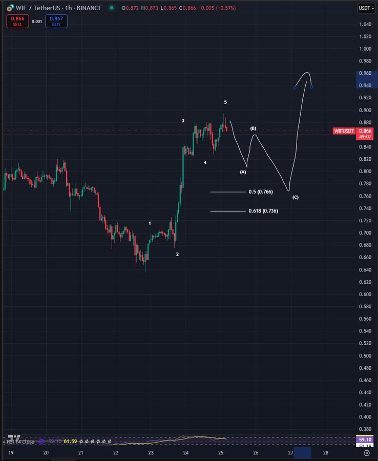 อย่างไรก็ตาม Bluntz ได้เตือนผู้ติดตามว่าขาขึ้นของ WIF จะไม่เกิดขึ้นในทันที หรือต่อเนื่องจากราคาปัจจุบัน แต่จะมีการปรับฐานลงมาก่อนประมาณ 10% เมื่อมองจากกราฟรายชั่วโมง ก่อนที่จะพุ่งทะยานอย่างรุนแรง