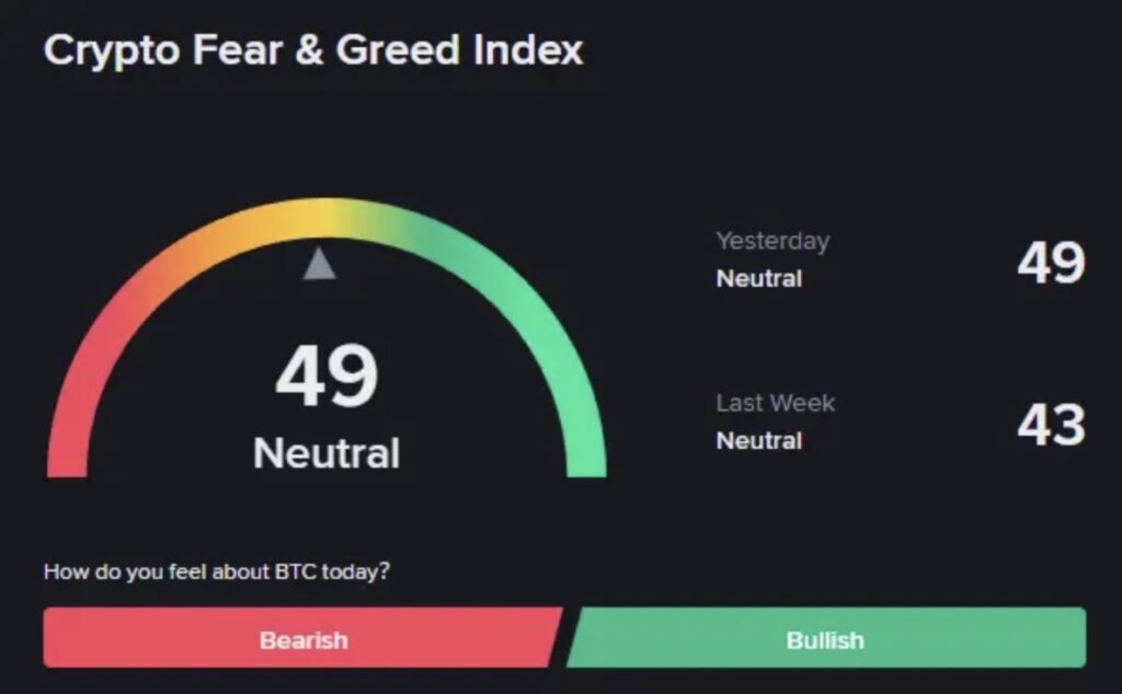 ยิ่งไปกว่านั้น ดัชนี Crypto Fear & Greed ซึ่งปัจจุบันอยู่ที่ 49 ก็ยังคงอยู่ในโซน “เป็นกลาง” ตอกย้ำว่าตลาดไม่ได้วุ่นวายหรือมีความโลภสุดขีด แต่กำลังอยู่ในภาวะที่นักลงทุนเลือกที่จะ “รอดูสถานการณ์” มากกว่า