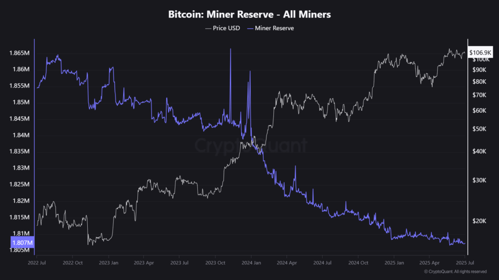 ถัดมา ข้อมูลทางฝั่งนักขุดเองก็มีความสำคัญไม่น้อยไปกว่าข้อมูลอื่น ๆ โดย Mining Pool Reserves ชี้ให้เห็นว่านักขุดยังคงเก็บเหรียญเอาไว้ในคลังหรือเทขายออกมาเพื่อทำกำไร