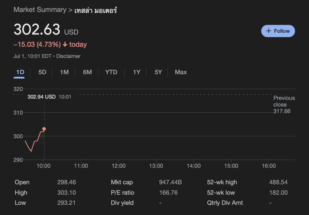 สุดท้าย มัสก์ยังตอบโต้ข้อกล่าวหาของทรัมป์ด้วยคลิปสัมภาษณ์ที่เขาระบุว่า “หากตัดเงินอุดหนุน EV จริง ตำแหน่งแข่งขันของ Tesla จะดีขึ้นอย่างมาก” — ท่ามกลางคำถามของนักลงทุนว่า Tesla จะอยู่รอดได้ดีเพียงใดในสถานการณ์ที่เปลี่ยนไปแรงขายที่กดดันหุ้น Tesla อย่างหนัก